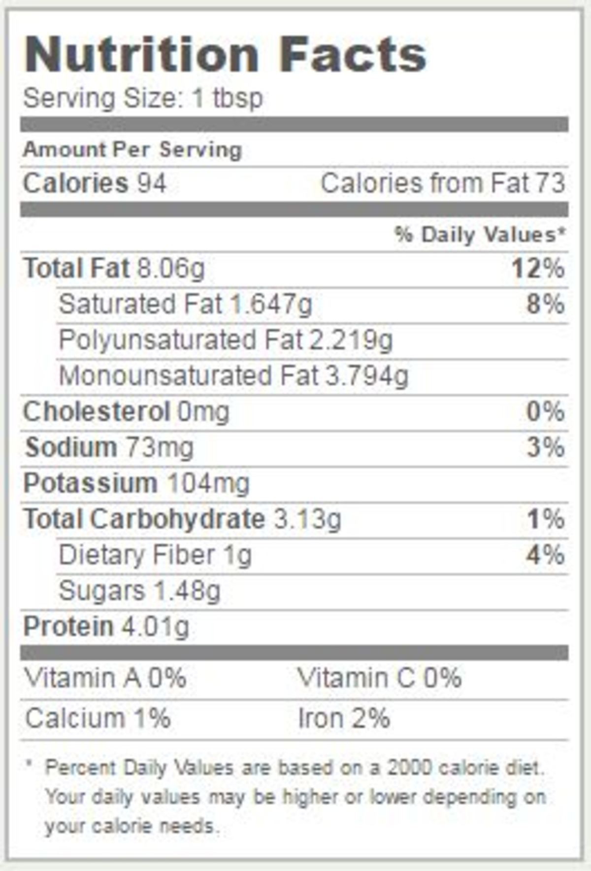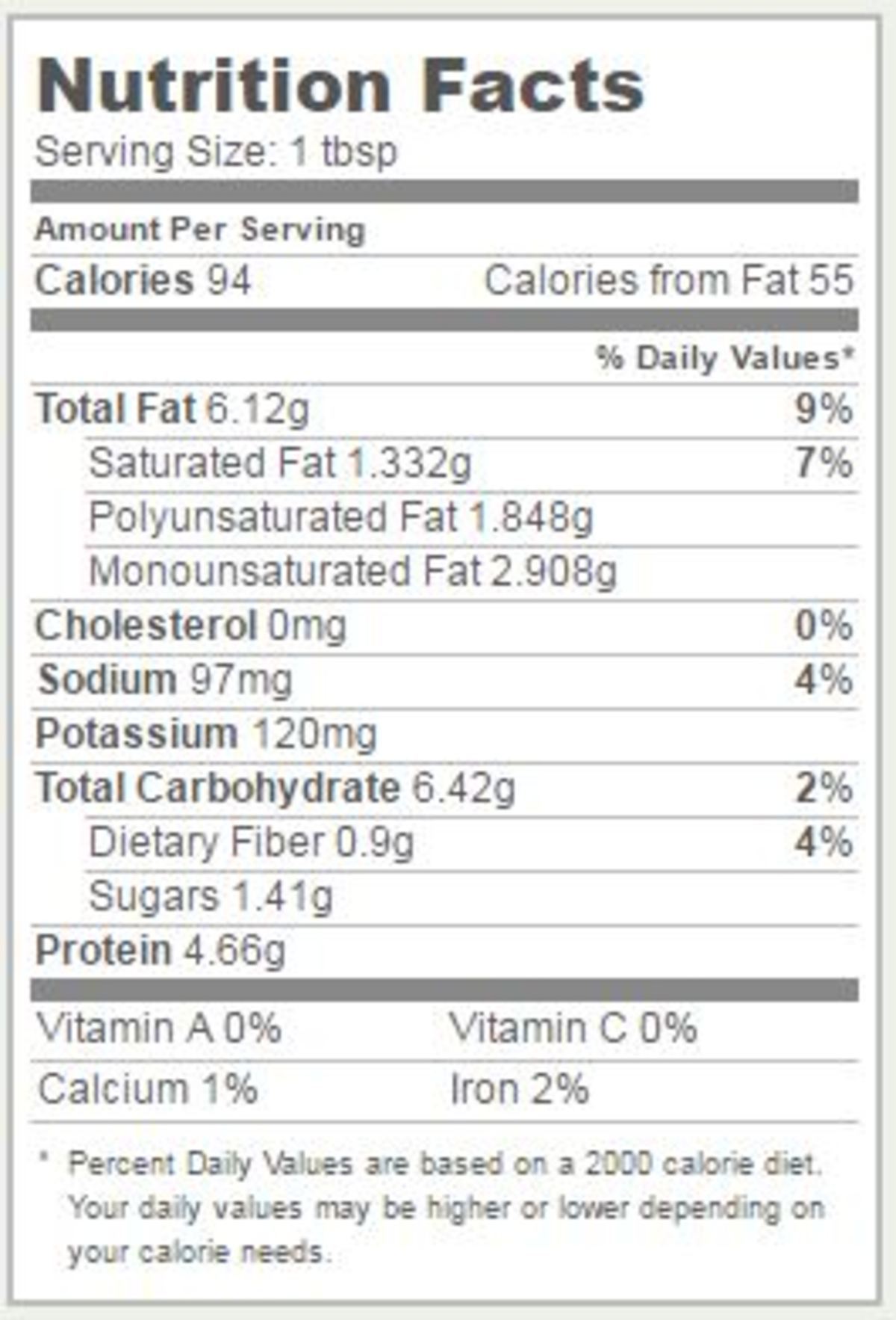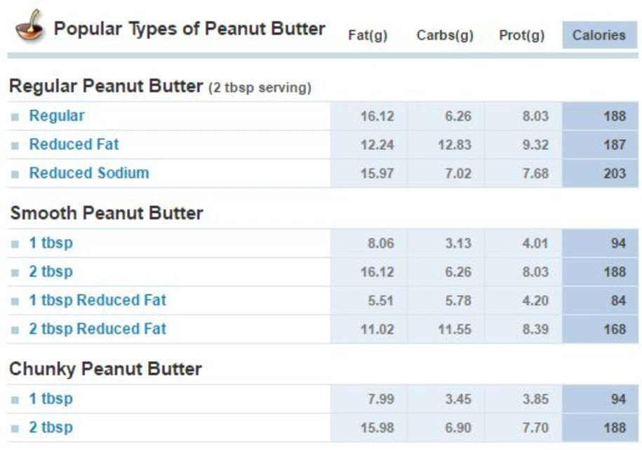 Όλες οι παραπάνω τιμές αλλάζουν λίγο ανάλογα με τα διαφορετικά είδη φυστικοβούτυρου (απαλό ή με κομματάκια φυστικιού, αλατισμένο ή ανάλατο, με μειωμένα λιπαρά ή πλήρες), αλλά σε γενικές γραμμές, αυτή είναι η διατροφική του αξία: