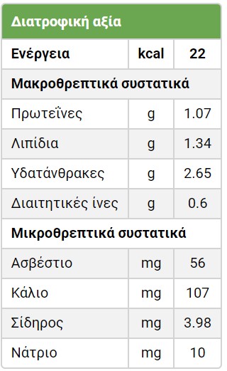 Στον παρακάτω πίνακα φαίνεται η σύσταση μιας κουταλιάς σούπας κύμινου.